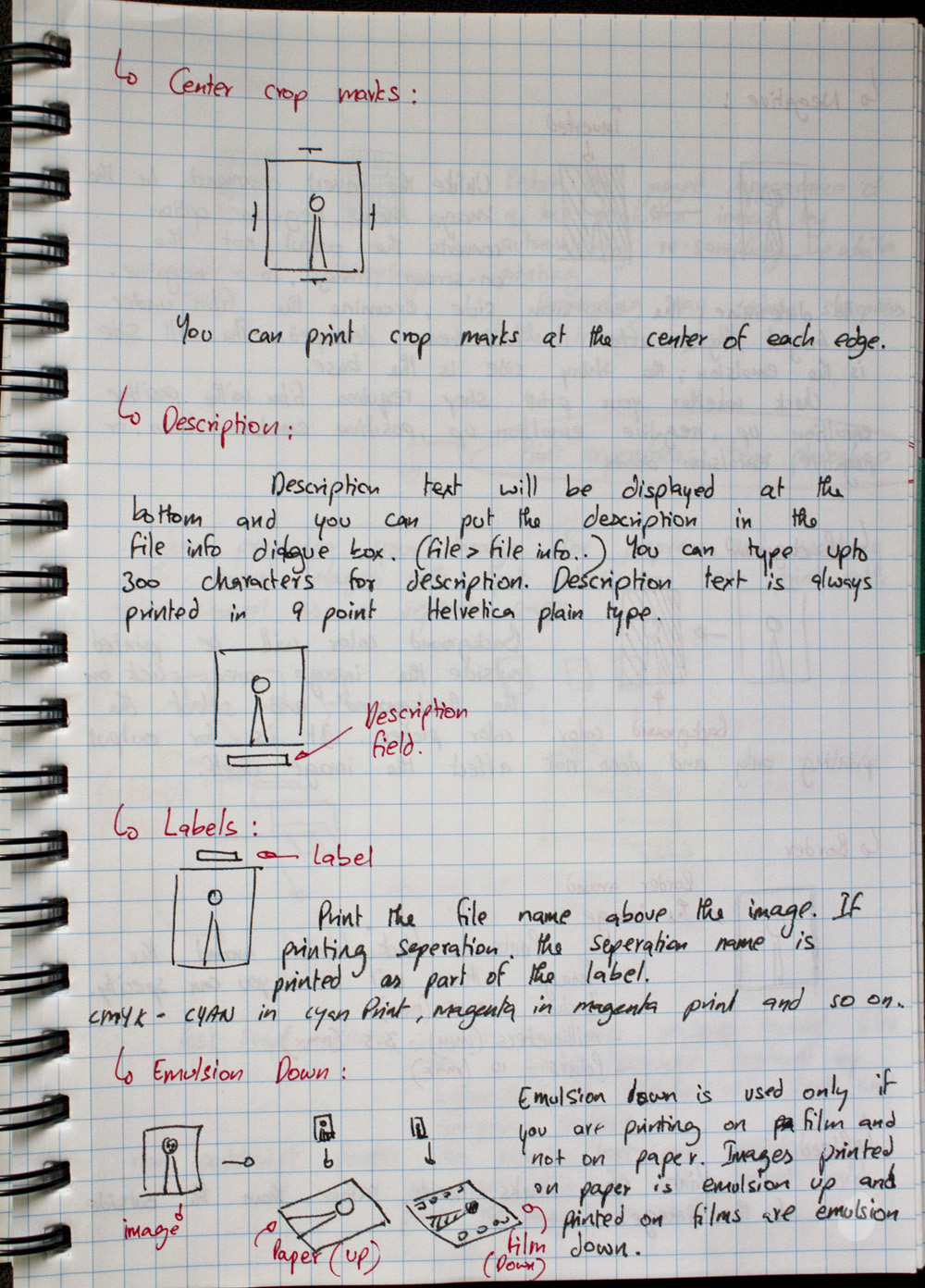 A label is the file name of your image which will be printed on top of the image. Description will appear below the image and you can add description in the File info dialog box (File > File Info...) (Alt + Ctrl + Shift + I) under description box. You can add upto 300 characters and its always printed in 9 point helvetica. If you don’t have any description to the image, the area will be empty and you won’t see any indication on the print dialog box once you check the description option.